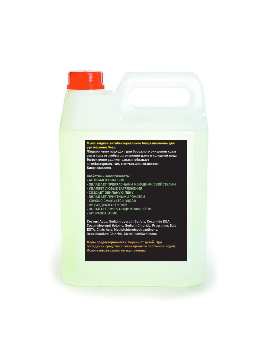 Жидкое антибактериальное мыло для рук и тела, увлажняет и питает, полностью смывается водой, устраняет запахи, гипоаллергенно.
