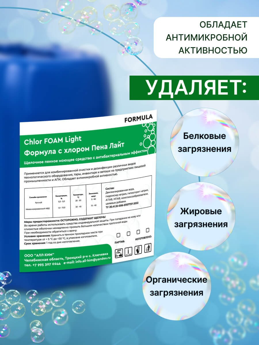 Щелочные пенные средства с антибактериальным эффектом Комплексная мойка и дезинфекция различного технологического оборудования, инвентаря, тары, емкостей, мойка полов, стен, производственных помещений и т.п.