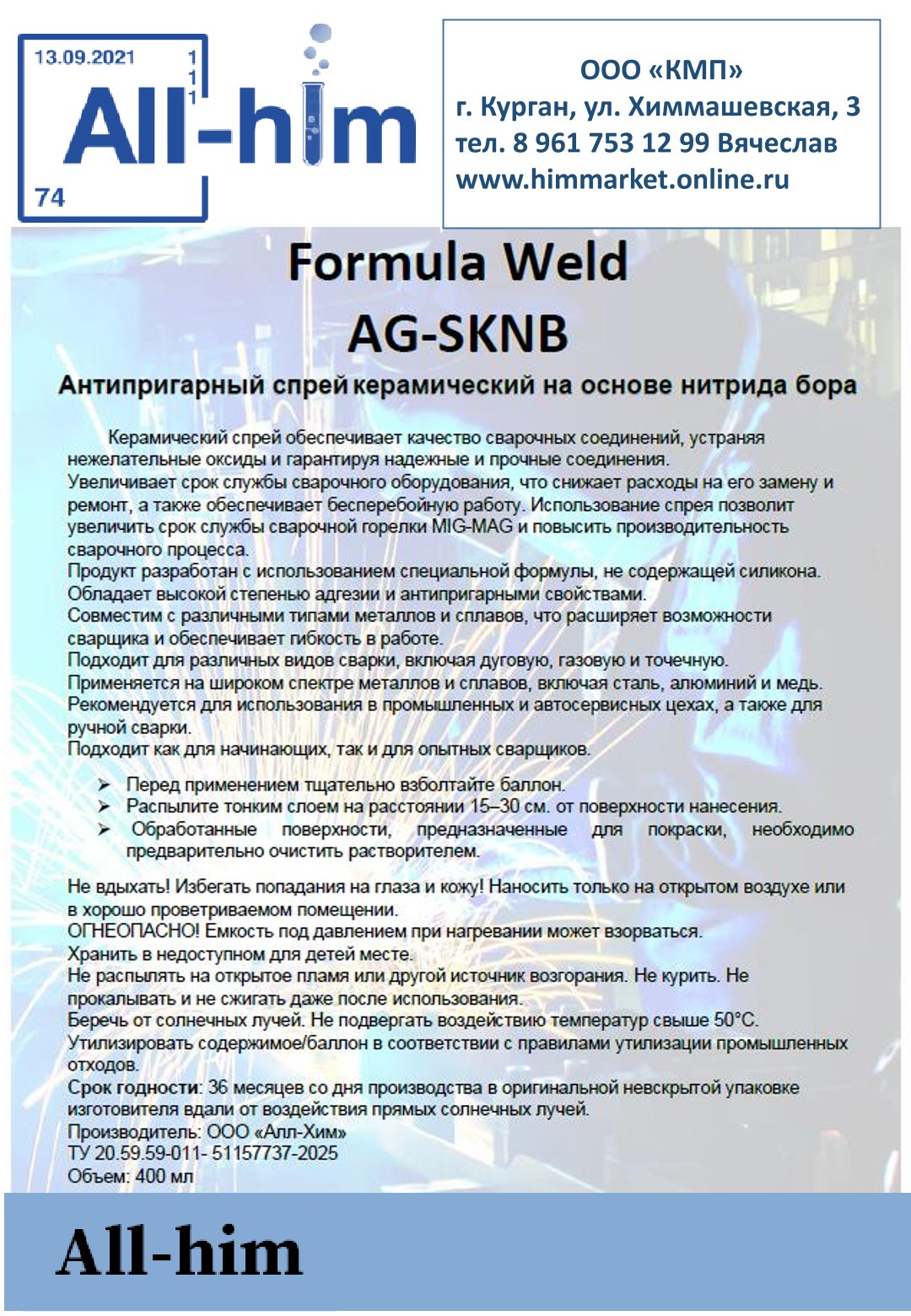 Спрей антипригарный керамический вид 1 (Аналог Abicor Binzel на основе нитрита бора)