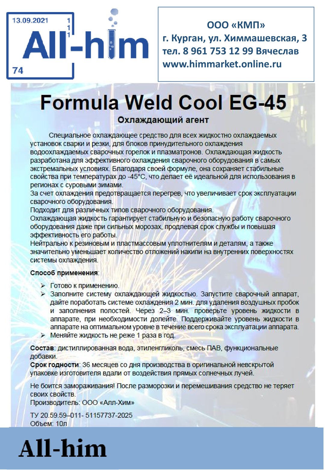 Охлаждающий агент на -45 С (На основе этиленглюколя)